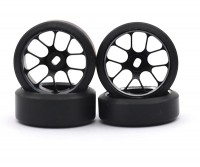 TIRE AND AUMINIUM FRONT / REAR WHEEL F 9mm / R 11.5mm 5.5 OFFSET For 1/28 KYOSHO MINI-Z RC DRIFT CAR - BLACK