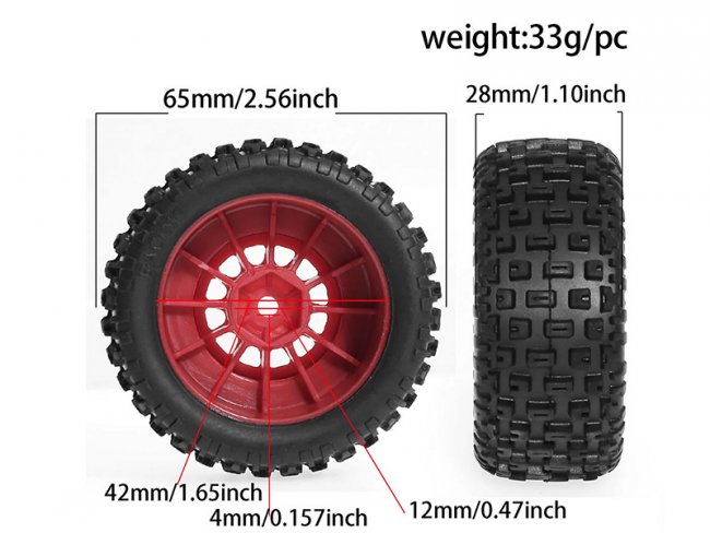 SHORT COURSE TIRE & RIM SET 65 X 28mm 12mm HEX AR ...