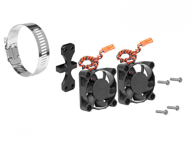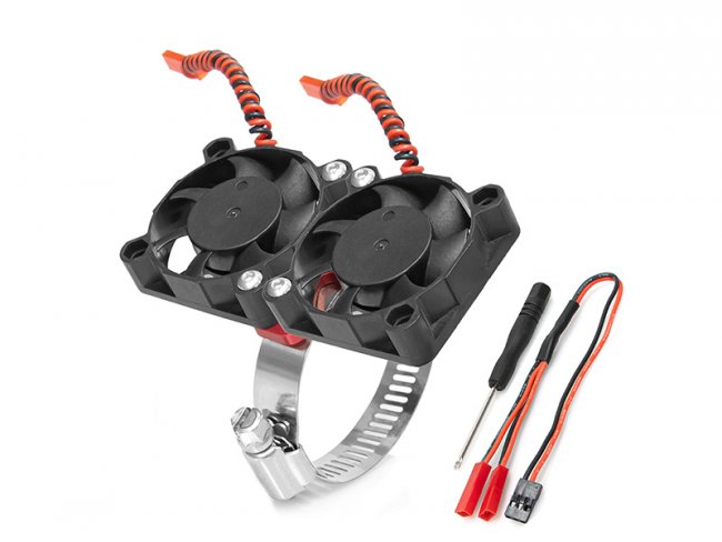 PLASTIC DUAL MOTOR HEATSINK COOLING FAN 40 X 40mm 40-50mm W. BELT MOUNT FOR 1/5 1/7 1/8 1/10 284 4985 1717 MOTOR by RCMODEL