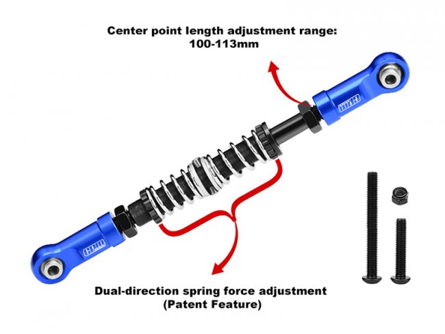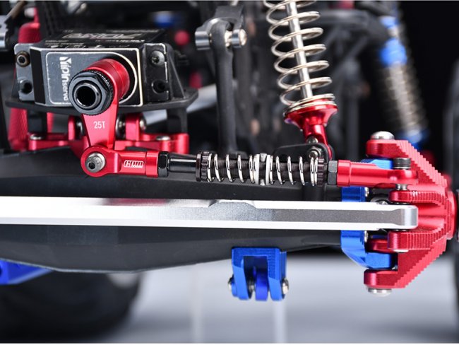 The servo steering linkage is crafted from 7075-T6 aluminum alloy, featuring an adjustable center point length of 100-113mm and dual-direction spring force adjustment. It enables precise setting of the force relief threshold (patent feature), minimizing damage to the servo from unexpected impacts while effectively preventing overload, gear backlash, and burnout risks.