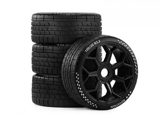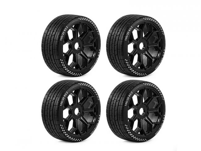 RUBBER TIRE & RIM SET 100/42 2.9 17mm HEX PRE-MOUNTED BELTED TYPE-A ARA550063 FOR ARRMA 1/7 INFRACTION 1/7 LIMITLESS F1 6S BLX - BLACK