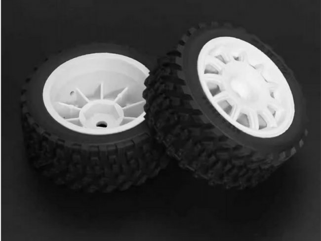 RALLY RUBBER TIRE AND RIM SET 68 X 26mm 12mm HEX FOR TAMIYA 1/10 TT-01 TT-02 XV-02 RALLY RC TRUCK - BLACK