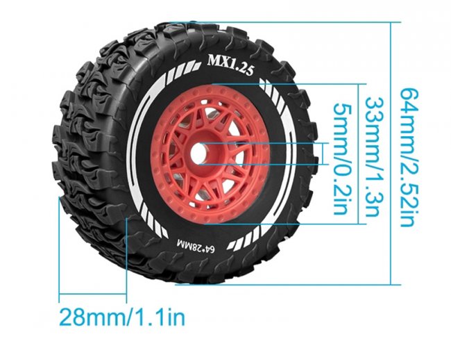SHORT COURSE RUBBER TIRE & RIM SET 64 X 28mm 12mm HEX ARA550116 FOR 1/14 ARRMA MOJAVE GROM RC TRUCK ARA2104 by RCMODEL