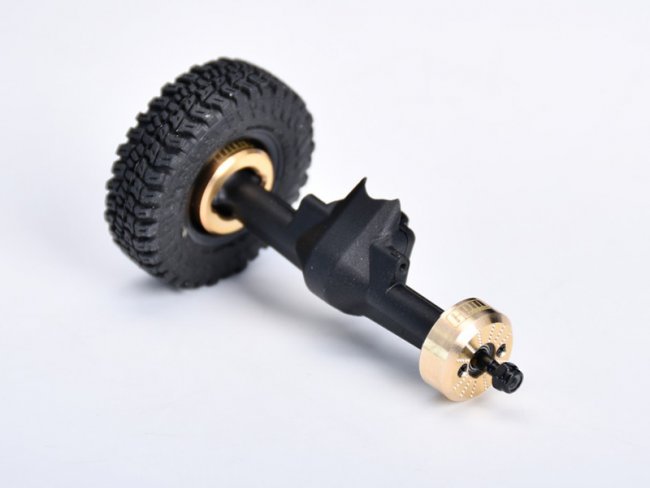 Precision Brass Weight Blocks】Specifically engineered for the AXIAL SCX30 to enhance climbing performance, these blocks are CNC-machined from solid brass stock - (5.0g each) Mounted on the rear axle hubs, they effectively lower the vehicle's center of gravity, improving driving stability and climbing capability to create a more versatile crawler - Compatible with AXI-3320 rear axle, directly replacing stock plastic rear hubs