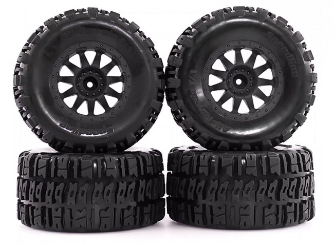 RUBBER TIRE & RIM SET 110 X 56mm 12mm HEX FOR TRAXXAS MINI MAXX MINI XRT HPI SAVAGE XS FLUX RC MONSTER