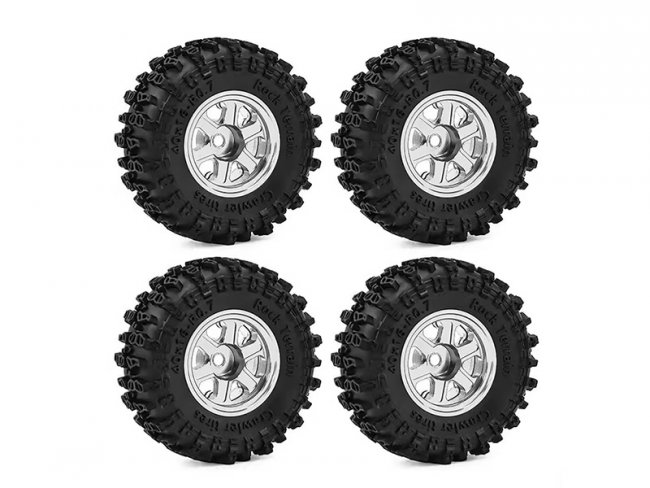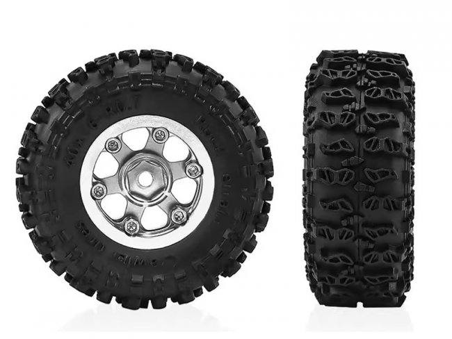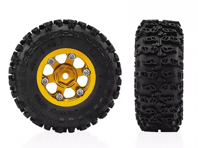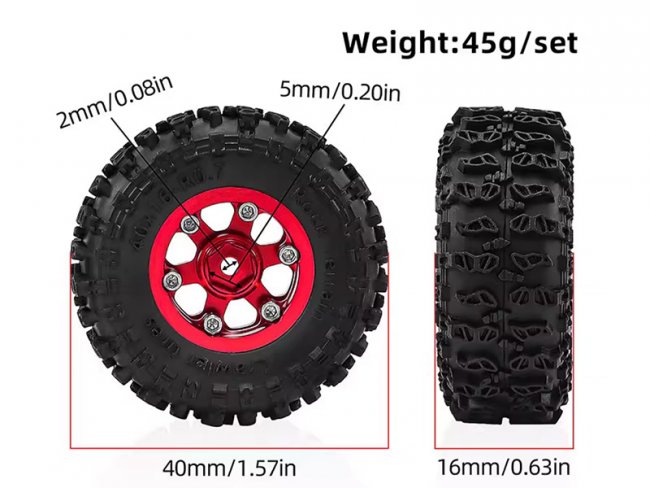 ALUMINUM TIRE & WHEEL SET 40 X 16mm FOR 1/30 AXIAL SCX30 RED CAT ASCENT 32 MIN CRALWER CHEVROLET K10 FORD BRONCO JEEP WRANGLER JLU AXI-2260 AXI-2048 AXI-2261