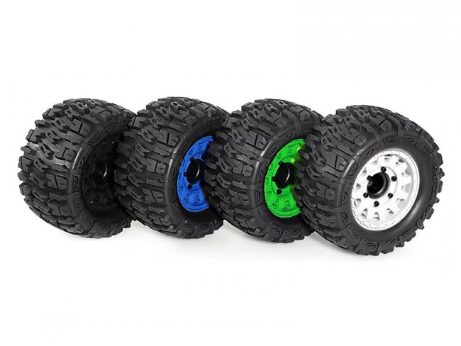 RUBBER TIRE AND RIM SET TYPE A 109 X 46mm 12mm 14mm 17mm Hex For 1/8 ARRMA MOJAVE 1/10 TRAXXAS SLASH SHORT COURSE TRUCK - GREEN