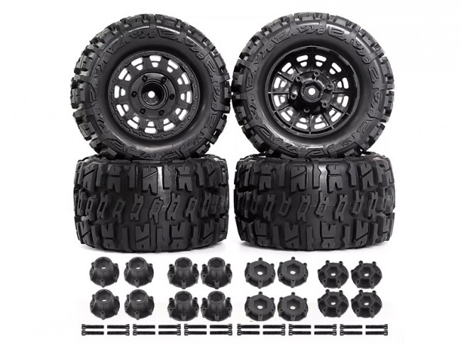 RUBBER TIRE & RIM SET 115 X 43mm 12 14mm HEX ARA550098 FOR ARRMA 1/8 TYPHON V5 TRL TRAXXAS JATO KYOSHO MP9 MP10 BUGGY