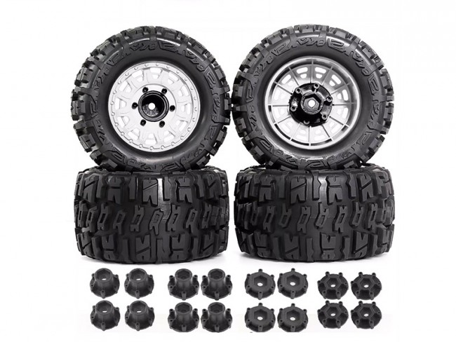 Rubber Tire and Rim Set 105 x 40mm 17mm Hex For 1/8 RC Arrma Kyosho Losi Truck - WHITE