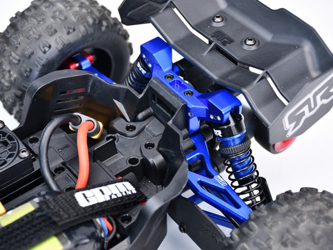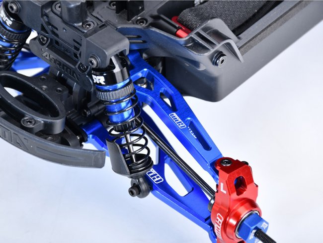 7075-T6 Aluminum is a light material anodized for longer durability, corrosion resistant and aesthetics. It has a high tensile strength for greater durability when doing extreme RC action, replaces factory part number (ARA-2674+ARA-2675)