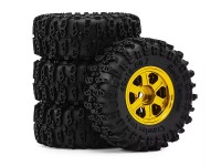 ALUMINUM TIRE & WHEEL SET 40 X 16mm FOR 1/30 AXIAL SCX30 RED CAT ASCENT 32 MIN CRALWER CHEVROLET K10 FORD BRONCO JEEP WRANGLER JLU AXI-2260 AXI-2048 AXI-2261 - GOLD