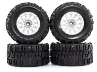 RUBBER TIRE & RIM SET 110 X 56mm 12mm HEX FOR TRAXXAS MINI MAXX MINI XRT HPI SAVAGE XS FLUX RC MONSTER - WHITE