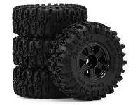 ALUMINUM TIRE & WHEEL SET 40 X 16mm FOR 1/30 AXIAL SCX30 RED CAT ASCENT 32 MIN CRALWER CHEVROLET K10 FORD BRONCO JEEP WRANGLER JLU AXI-2260 AXI-2048 AXI-2261 - BLACK