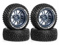 RUBBER TIRE AND ALLOY RIM SET 75 X 30mm 12mm HEX FOR TAMIYA TT-02 XV-02 RALLY TRUCK - GUN SILVER