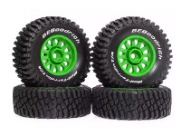 RUBBER TIRE AND RIM SET 70 X 27mm 12mm HEX FOR ARRMA 1/16 1/16 MOJAVE GROM TRUCK ARA2130 ARA2304 - GREEN